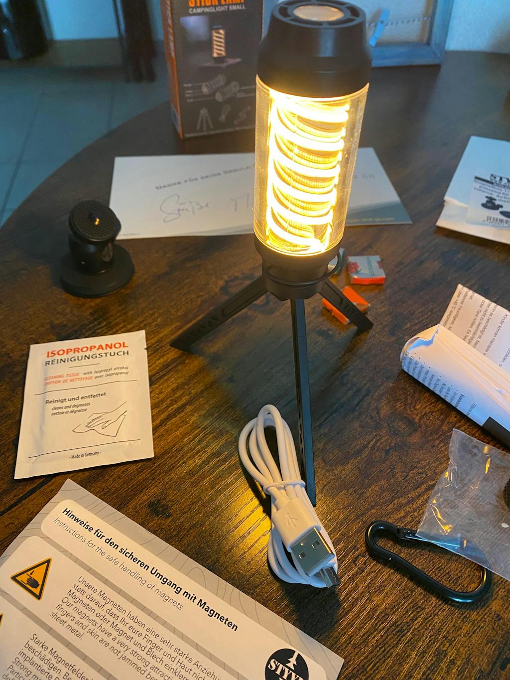Eine mega Erweiterung ist der "Magnetfuß Edition Styyl". Das ist ein kleiner Kugelkopf, mit einem Magnetfuß. Den verbindest mit deiner kleinen Campinglampe und kannst die so überall an deiner Karosse, oder anderen magnetischen Oberflächen fixieren. Dieses Erweiterung ist nicht im Lieferumfang enthalten und muss zusätzlich erworben werden.